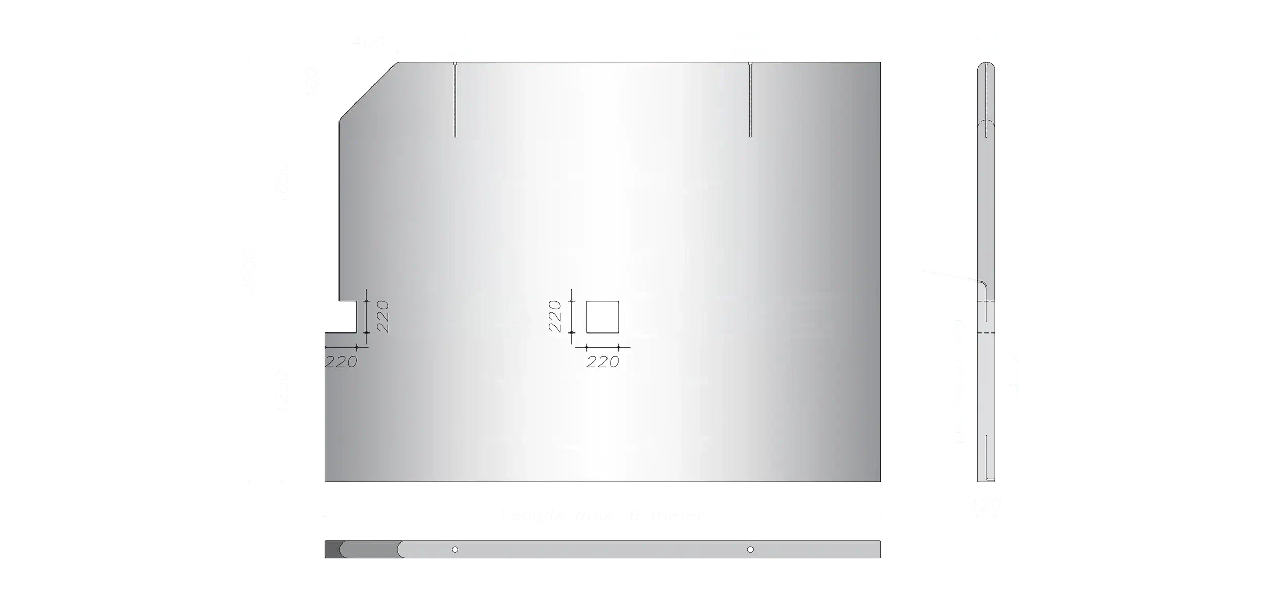 | Længde | Max 6000 mm |