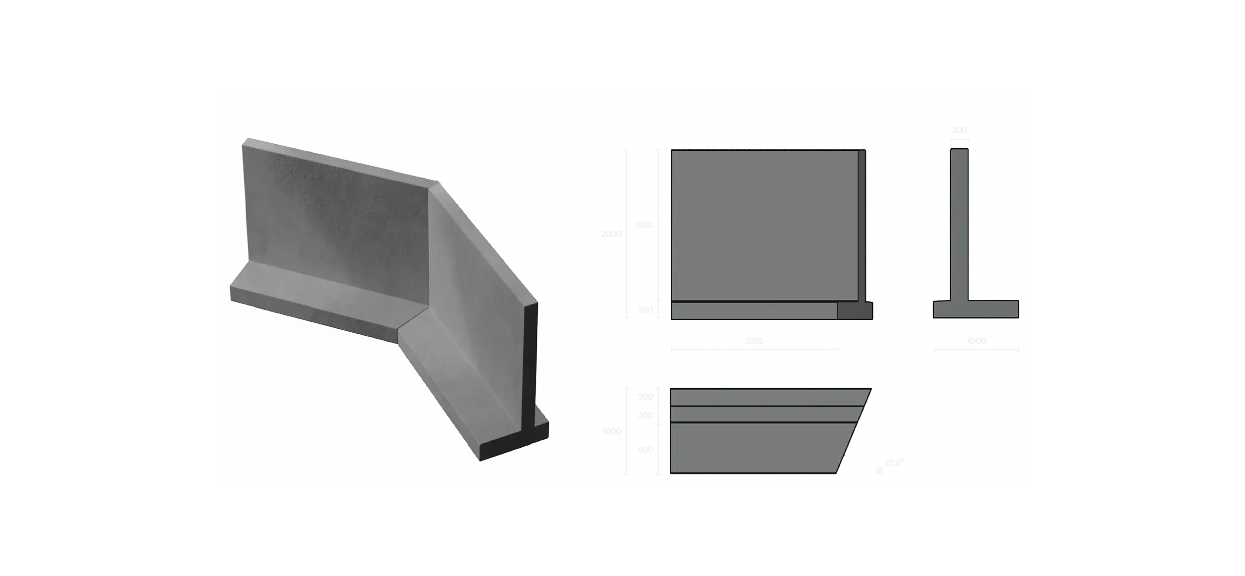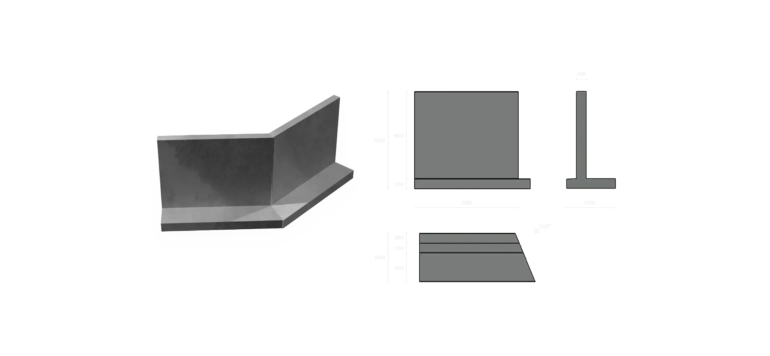 Udvendigt højre hjørne 22,5° HJØRNEELEMENT, HØJRE – LEVERES OGSÅ SOM VENSTRE