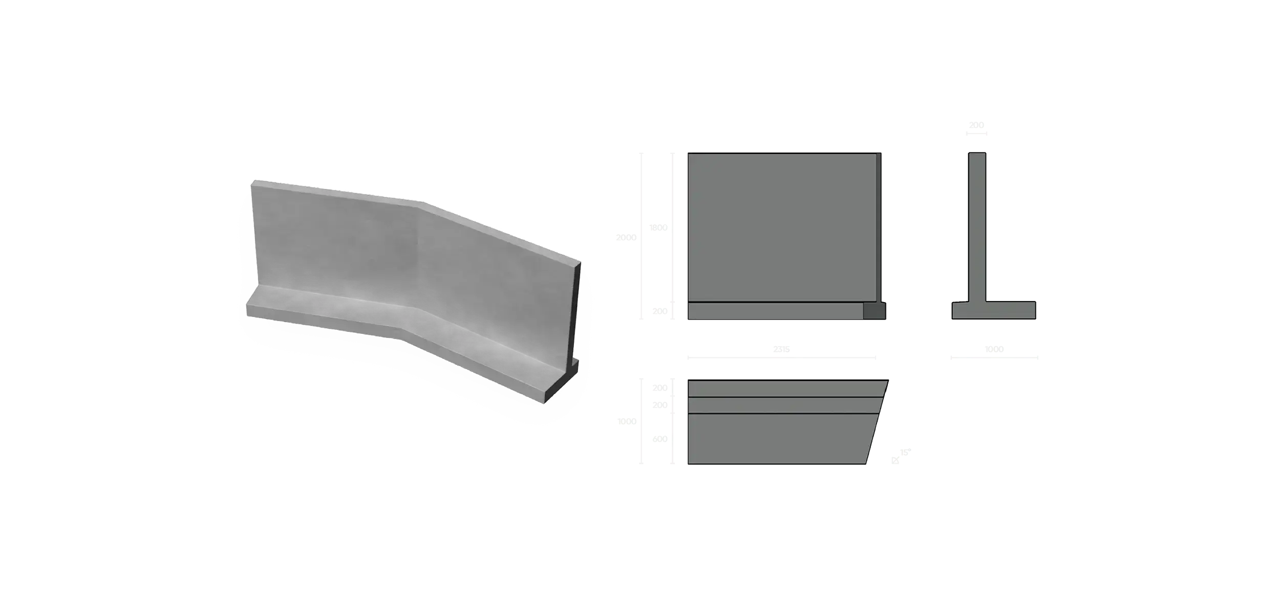 Udvendigt højre hjørne 15° HJØRNEELEMENT, HØJRE – LEVERES OGSÅ SOM VENSTRE